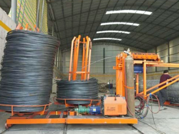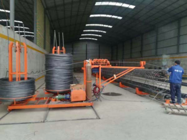 5、繞筋線材經(jīng)過矯直系統(tǒng),由彎曲狀變?yōu)榻街本€,按螺旋狀纏繞在鋼筋籠上,以保證繞筋間距及形狀的完整。
