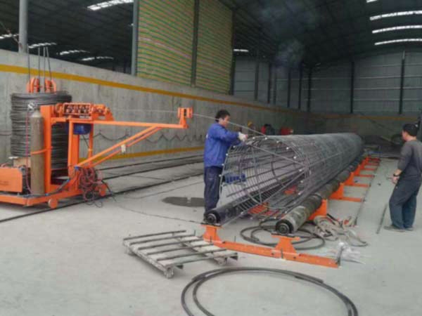 2、鋼筋籠12米以上,或者單節(jié)鋼筋籠較重時(shí),骨架中間加焊1、2圈纏繞筋替代第三個(gè)過渡箍?;蛑苯又虚g開始繞筋,另半截籠前面向中間纏繞連接完成。所以三個(gè)過渡箍的中間一個(gè)箍應(yīng)置放在中間靠后面的地方,借以減少?zèng)_擊振動(dòng)。退出輥輪并過渡到后面輥輪的方法--將過渡箍向后面推壓,讓過渡箍順膠輥旋轉(zhuǎn)到上面直到全部退出。準(zhǔn)備臺架;若采用骨架直接滾進(jìn)輥輪內(nèi)檔(小型鋼筋籠),骨架制作臺架高度與設(shè)備同高。